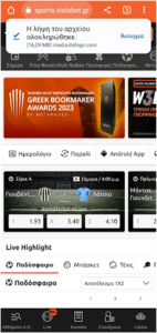 1) Ανοίξτε τον browser του κινητού σας και πληκτρολογήστε Vistabet.gr.